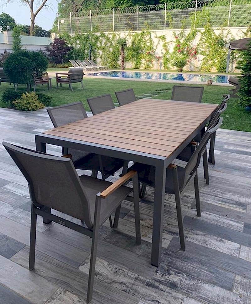 Bodrum Yemek Masası takımımız Alüminyum İskelet Üzerine İroko işlemelidir.